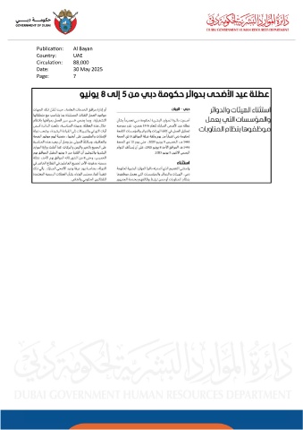 Publication: Al Bayan Country: UAE Circulation: 88,000 Date: 30 May 2025 Page: 7