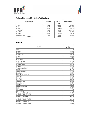Value of Ad Spend for Arabic Publications