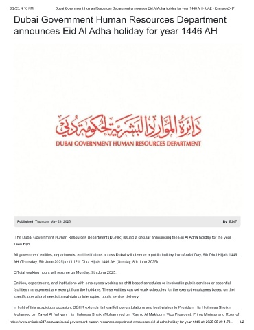 https://www.emirates247.com/uae/dubai-government-human-resources-department-announces-eid-al-adha-holiday-for-year-1446-ah-2025-05-29-1.73… 1/2
