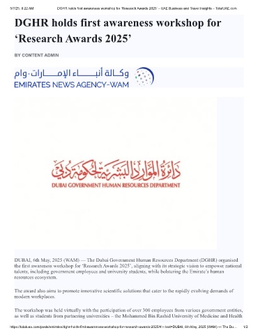 https://totaluae.com/posts/emirates/dghr-holds-first-awareness-workshop-for-research-awards-2025/#:~:text=DUBAI, 6th May, 2025 (WAM) — The Du… 1/2