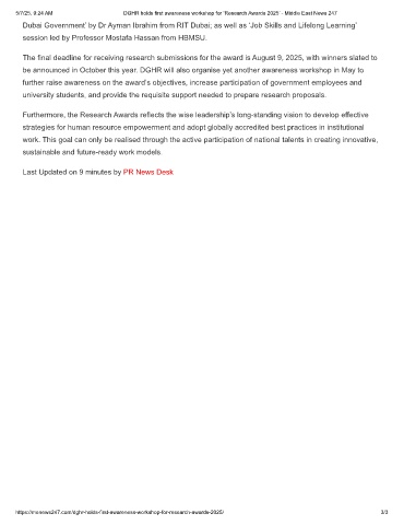 5/7/25, 9:24 AM DGHR holds first awareness workshop for ‘Research Awards 2025’ - Middle East News 247