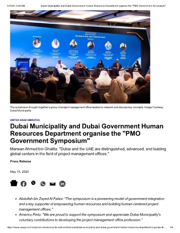 5/16/25, 9:28 AM Dubai Municipality and Dubai Government Human Resources Department organise the "PMO Government Symposium"