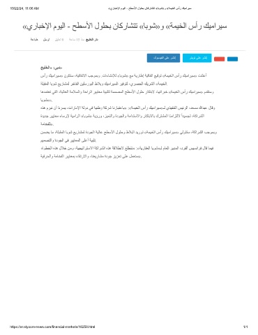 10/22/24, 11:06 AM «يرﺎﺑﺧﻹا موﯾﻟا - ﺢطﺳﻷا لوﻠﺣﺑ نﺎﻛرﺎﺷﺗﺗ «ﺎﺑوﺷ»و «ﺔﻣﯾﺧﻟا سأر كﯾﻣارﯾﺳ