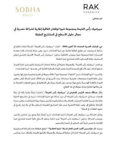 ي ﺎﻴ ﻓ ً ﻤﻟﺎﻋ ةﺪﺋاﺮﻟا ﺔﻛﺮﺸﻟا " ، ﺔﻤﻴﺨﻟا سأر ﻚﻴﻣاﺮﻴﺳ " ﺖﻨﻠﻋأ – 2024 ﺮﺑﻮﺘﻛ أ 21 ،ةﺪﺤﺘﻤﻟا ﺔﻴﺑﺮﻌﻟا تارﺎﻣﻹا ،ي ﺑد