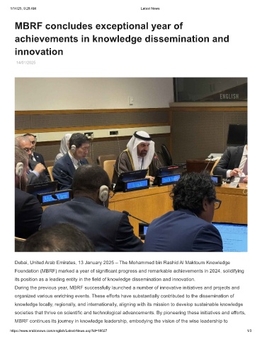 Dubai, United Arab Emirates, 13 January 2025 – The Mohammed bin Rashid Al Maktoum Knowledge