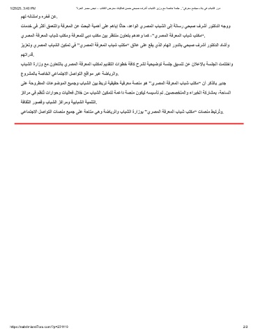 1/28/25, 3:40 PM “ةرﺣﻟا رﺻﻣ ضﺑﻧ – بﺎﺗﻛﻟا ضرﻌﻣ تﺎﯾﻟﺎﻌﻓ نﻣﺿ ﻲﺣﺑﺻ فرﺷأ بﺎﺑﺷﻟا رﯾزو ﻊﻣ ﺔﺻﺎﺧ ﺔﺳﻠﺟ ..”ﻲﻓرﻌﻣ ﻊﻣﺗﺟﻣ ءﺎﻧﺑ ﻲﻓ بﺎﺑﺷﻟا رود
