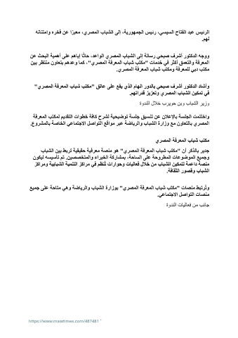 "يرصملا ةفرعملا بابش بتكم" قتاع ىلع عقي يذلا ماهلا رودلاب يحبص فرشأ روتكدلا داشأو