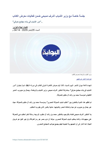 ريدملا ،بريوح نب لامجو ،ةضايرلاو بابشلا ريزو ،يحبص فرشأ روتكدلا ةكراشمب ،"يفرعم عمتجم ءانب يف بابشلا