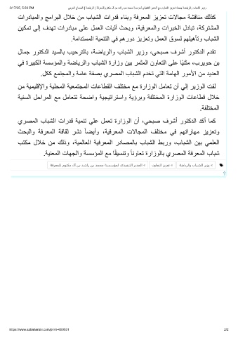 يرﺻﻣﻟا بﺎﺑﺷﻟا تاردﻗ ﺔﯾﻣﻧﺗ ﻲﻠﻋ لﻣﻌﺗ ةرازوﻟا نأ ،ﻲﺣﺑﺻ فرﺷأ روﺗﻛدﻟا دﻛأ ﺎﻣﻛ