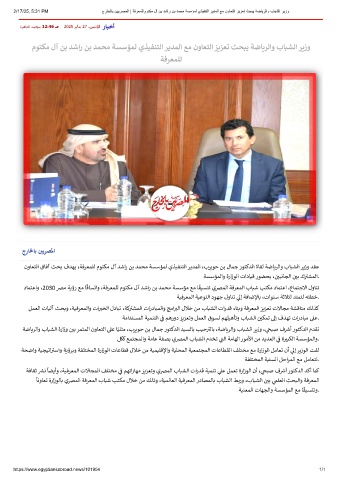 نوﺎﻌﺘﻟا قﺎﻓآ ﺚﺤب فﺪﻬﺑ ،ﺔﻓﺮﻌﻤﻠﻟ مﻮﺘﻜﻣ لآ ﺪﺷار ﻦﺑ ﺪﻤﺤﻣ ﺔﺴﺳﺆﻤﻟ يﺬيﻔﻨﺘﻟا ﺮﻳﺪﻤﻟا ،بﺮيوﺣ ﻦﺑ لﺎﻤﺟ رﻮﺘﻛﺪﻟا ءﺎﻘﻟ ﺔﺿﺎيرﻟاو بﺎبﺸﻟا ﺮيزو ﺪﻘﻋ