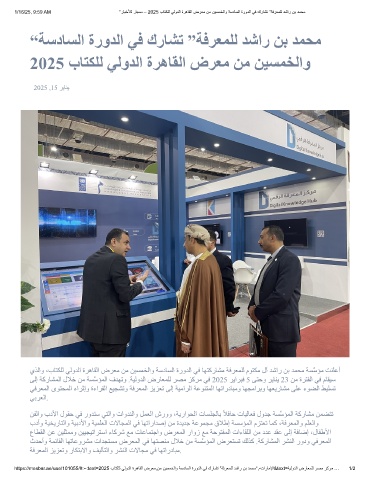 1/16/25, 9:59 AM “رﺎﺑﺧﻸﻟ رﺎﺑﺳﻣ – 2025 بﺎﺗﻛﻠﻟ ﻲﻟودﻟا ةرھﺎﻘﻟا ضرﻌﻣ نﻣ نﯾﺳﻣﺧﻟاو ﺔﺳدﺎﺳﻟا ةرودﻟا ﻲﻓ كرﺎﺷﺗ ”ﺔﻓرﻌﻣﻠﻟ دﺷار نﺑ دﻣﺣﻣ