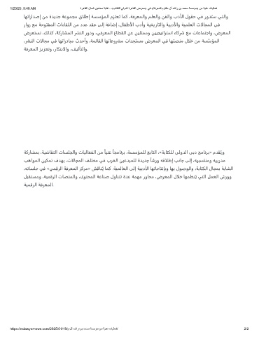 1/20/25, 9:48 AM ةرھﺎﻘﻟا لﺎﻣﺷ نﯾﻣﺎﺣﻣ ﺔﺑﺎﻘﻧ - «بﺎﺗﻛﻠﻟ ﻲﻟودﻟا ةرھﺎﻘﻟا ضرﻌﻣ» ﻲﻓ «ﺔﻓرﻌﻣﻠﻟ موﺗﻛﻣ لآ دﺷار نﺑ دﻣﺣﻣ ﺔﺳﺳؤﻣ» نﻣ ﺔﯾﻧﻏ تﺎﯾﻟﺎﻌﻓ