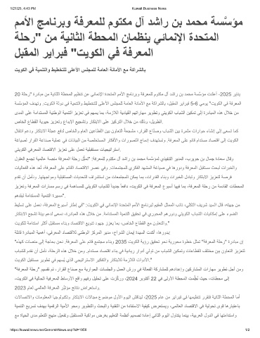 20 ﺔﻠﺣر" ةردﺎﺑﻣ نﻣ ﺔﯾﻧﺎﺛﻟا ﺔطﺣﻣﻟا مﯾظﻧﺗ نﻋ ﻲﺋﺎﻣﻧﻹا ةدﺣﺗﻣﻟا مﻣﻷا ﺞﻣﺎﻧرﺑو ﺔﻓرﻌﻣﻠﻟ موﺗﻛﻣ لآ دﺷار نﺑ دﻣﺣﻣ ﺔﺳﱠﺳؤﻣ تﻧﻠﻋأ -2025 رﯾﺎﻧﯾ