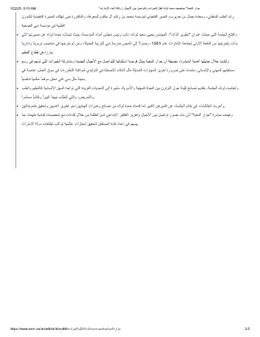 نﮭﺗﺎﺣوﻣط ﻖﯾﻘﺣﺗو نﮭﺳﻔﻧأ رﯾوطﺗ وﺣﻧ نﮭﺗﻣﮭﻟأ تارﺑﺧو ﺢﺋﺎﺻﻧ نﻣ هﺎﺗوﻟ ةدﻣﺣ ﮫﺗﻣدﻗ ﺎﻣﻟ رﯾﺑﻛﻟا نھرﯾدﻘﺗ نﻋ ،ﺔﺳﻠﺟﻟا مﺎﺗﺧ ﻲﻓ ،تﺎﺑﻟﺎطﻟا تﺑرﻋأو.