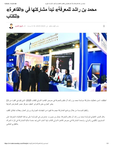 1/28/25, 10:29 AM «موﯾﻟا تارﺎﻣﻹا رﺎﺑﺧأ | «بﺎﺗﻛﻠﻟ ةرھﺎﻘﻟا» ﻲﻓ ﺎﮭﺗﻛرﺎﺷﻣ أدﺑﺗ «ﺔﻓرﻌﻣﻠﻟ دﺷار نﺑ دﻣﺣﻣ