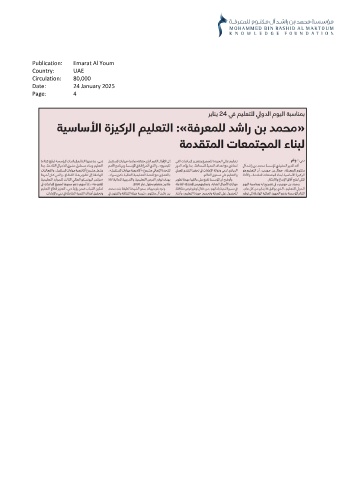 Publication: Emarat Al Youm Country: UAE Circulation: 80,000 Date: 24 January 2025 Page: 4