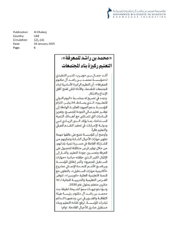 Publication: Al Khaleej Country: UAE Circulation: 121,141 Date: 24 January 2025 Page: 6