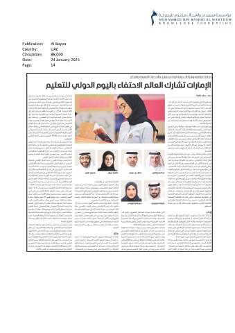 Publication: Al Bayan Country: UAE Circulation: 88,000 Date: 24 January 2025 Page: 14