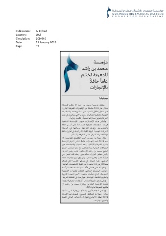 Publication: Al Etihad Country: UAE Circulation: 109,640 Date: 15 January 2025 Page: 39