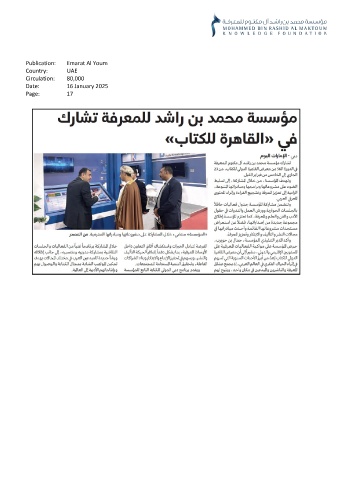 Publication: Emarat Al Youm Country: UAE Circulation: 80,000 Date: 16 January 2025 Page: 17