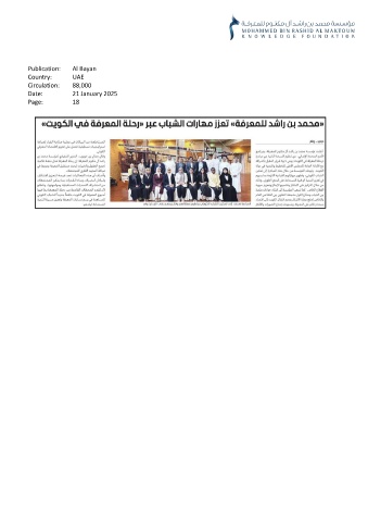 Publication: Al Bayan Country: UAE Circulation: 88,000 Date: 21 January 2025 Page: 18