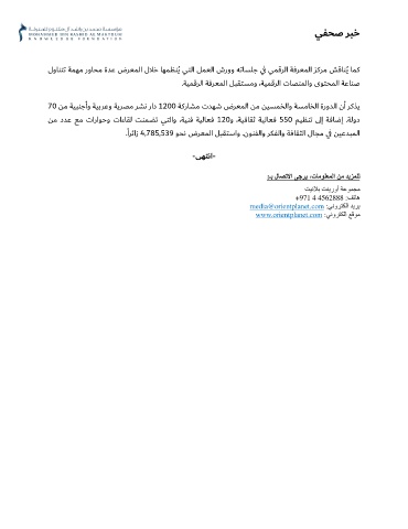. ًاﺮﺋاز 4,785,539 ﻮﺤﻧ ضﺮﻌﻤﻟا ﻞﺒﻘﺘﺳاو .نﻮﻨﻔﻟاو ﺮﻜﻔﻟاو ﺔﻓﺎﻘﺜﻟا لﺎﺠﻣ ي ﻓ ﻦﻴﻋﺪﺒﻤﻟا