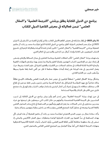 مﻮﺘﻜﻣ لآ ﺪﺷار ﻦﺑ ﺪﻤﺤﻣ ﺔﺴ ﺳﺆﻤﻟ ﻊﺑﺎﺘﻟا ﺔﺑﺎﺘﻜﻠﻟ يﻟوﺪﻟا ي ﺑد ﺞﻣﺎﻧﺮﺑ ﻖﻠﻃأ ، ﺔﻴﻟوﺪﻟا ضرﺎﻌﻤﻠﻟ ﺮﺼﻣ ﺰﻛﺮﻣ ي ﻓ 2025