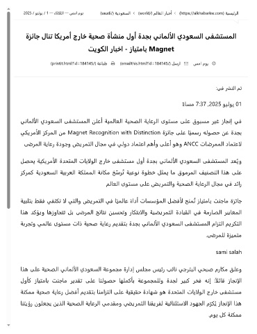 ةﺰﺋﺎﺟ لﺎﻨﺗ ﺎﻜﻳﺮﻣأ جرﺎﺧ ﺔﻴﺤﺻ ةﺄﺸﻨﻣ لوأ ةﺪﺠﺑ ﻲﻧﺎﻤﻟألا يدﻮﻌﺴﻟا ﻰﻔﺸﺘﺴﻤﻟا