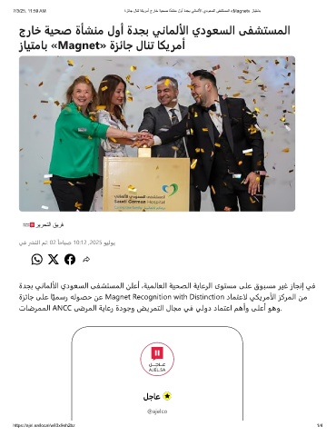 7/3/25, 11:59 AM ةزﺋﺎﺟ لﺎﻧﺗ ﺎﻛﯾرﻣأ جرﺎﺧ ﺔﯾﺣﺻ ةﺄﺷﻧﻣ لوأ ةدﺟﺑ ﻲﻧﺎﻣﻟﻷا يدوﻌﺳﻟا ﻰﻔﺷﺗﺳﻣﻟا «Magnet» زﺎﯾﺗﻣﺎﺑ