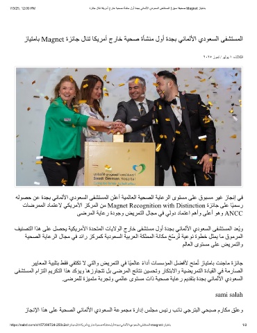 7/3/25, 12:00 PM ةزﺋﺎﺟ لﺎﻧﺗ ﺎﻛﯾرﻣأ جرﺎﺧ ﺔﯾﺣﺻ ةﺄﺷﻧﻣ لوأ ةدﺟﺑ ﻲﻧﺎﻣﻟﻷا يدوﻌﺳﻟا ﻰﻔﺷﺗﺳﻣﻟا | ﻖﺑﺳ ﺔﻔﯾﺣﺻ Magnet زﺎﯾﺗﻣﺎﺑ