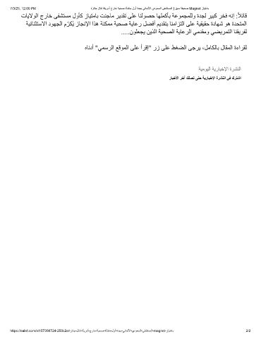 7/3/25, 12:00 PM ةزﺋﺎﺟ لﺎﻧﺗ ﺎﻛﯾرﻣأ جرﺎﺧ ﺔﯾﺣﺻ ةﺄﺷﻧﻣ لوأ ةدﺟﺑ ﻲﻧﺎﻣﻟﻷا يدوﻌﺳﻟا ﻰﻔﺷﺗﺳﻣﻟا | ﻖﺑﺳ ﺔﻔﯾﺣﺻ Magnet زﺎﯾﺗﻣﺎﺑ