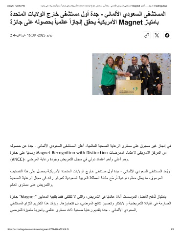 7/3/25, 12:00 PM ةزﺋﺎﺟ ﻰﻠﻋ ﮫﻟوﺻﺣﺑ ً ﺎﯾﻣﻟﺎﻋ ًازﺎﺟﻧإ ﻖﻘﺣﯾ ﺔﯾﻛﯾرﻣﻷا ةدﺣﺗﻣﻟا تﺎﯾﻻوﻟا جرﺎﺧ ﻰﻔﺷﺗﺳﻣ لوأ ةدﺟ - ﻲﻧﺎﻣﻟﻷا يدوﻌﺳﻟا ﻰﻔﺷﺗﺳﻣﻟا Magnet رﺎﺑﺧأ — زﺎﯾﺗﻣﺎﺑ TradingView