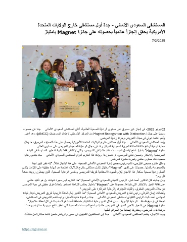 هلوصح نع ةدج � ينامللأا يدوعسلا ىفشتسملا نلعأ ،ةيملاعلا ةيحصلا ةياعرلا ىوتسم ىلع قوبسم ريغ زاجنإ يف - 2025 ويلوي 02