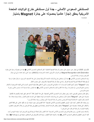 ةزﺋﺎﺟ ﻰﻠﻋ ﺎًﯾﻣﺳر ﮫﻟوﺻﺣ نﻋ ةدﺟ � ﻲﻧﺎﻣﻟﻷا يدوﻌﺳﻟا ﻰﻔﺷﺗﺳﻣﻟا نﻠﻋأ ،ﺔﯾﻣﻟﺎﻌﻟا ﺔﯾﺣﺻﻟا ﺔﯾﺎﻋرﻟا ىوﺗﺳﻣ ﻰﻠﻋ قوﺑﺳﻣ رﯾﻏ زﺎﺟﻧإ ﻲﻓ -2025 وﯾﻟوﯾ 02