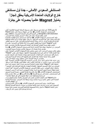 ةﺪﺤﺘﻤﻟا تﺎﻳﻻﻮﻟا جرﺎﺧ ﻰﻔﺸﺘﺴﻣ لوأ ةﺪﺟ � ﻲﻧﺎﻤﻟﻷا يدﻮﻌﺴﻟا ﻰﻔﺸﺘﺴﻤﻟا ﺪﻌُﻳو