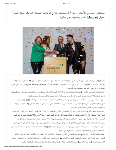 02 ﮫﻟوﺻﺣ نﻋ ةدﺟ � ﻲﻧﺎﻣﻟﻷا يدوﻌﺳﻟا ﻰﻔﺷﺗﺳﻣﻟا نﻠﻋأ ،ﺔﯾﻣﻟﺎﻌﻟا ﺔﯾﺣﺻﻟا ﺔﯾﺎﻋرﻟا ىوﺗﺳﻣ ﻰﻠﻋ قوﺑﺳﻣ رﯾﻏ زﺎﺟﻧإ ﻲﻓ -2025 وﯾﻟوﯾ