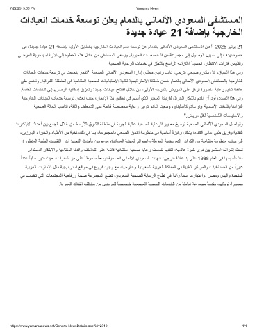 ﻲﻓ ،ةدﯾدﺟ ةدﺎﯾﻋ 21 ﺔﻓﺎﺿﺈﺑ ،لوﻷا ﻖﺑﺎطﻟﺎﺑ ﺔﯾﺟرﺎﺧﻟا تادﺎﯾﻌﻟا مﺳﻗ ﺔﻌﺳوﺗ نﻋ مﺎﻣدﻟﺎﺑ ﻲﻧﺎﻣﻟﻷا يدوﻌﺳﻟا ﻰﻔﺷﺗﺳﻣﻟا نﻠﻋأ -2025 وﯾﻟوﯾ 21