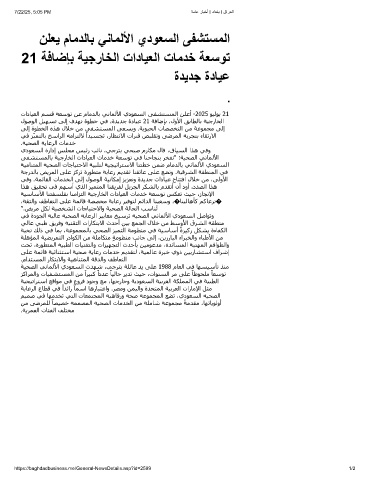 تادﺎﯿﻌﻟا ﻢﺴﻗ ﺔﻌﺳﻮﺗ ﻦﻋ مﺎﻣﺪﻟﺎﺑ ﻲﻧﺎﻤﻟﻷا يدﻮﻌﺴﻟا ﻰﻔﺸﺘﺴﻤﻟا ﻦﻠﻋأ -2025 ﻮﯿﻟﻮﻳ 21