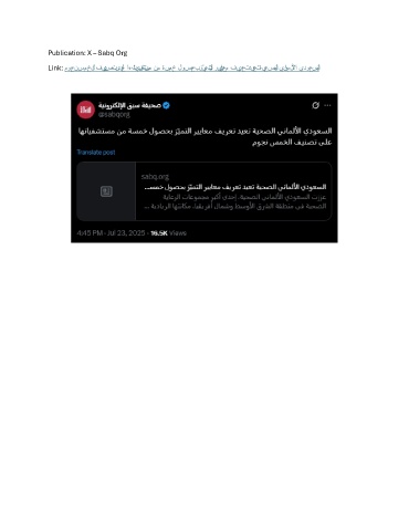 Publication: X – Sabq Org ا م ا ا ا ا Link: موجن سمخل فينصتىلع اهتيفشتسم نم ةسمخ لوصحبزّيتلا رييعم فيرعتديعتةيحصلا ينمللأا يدوعسل