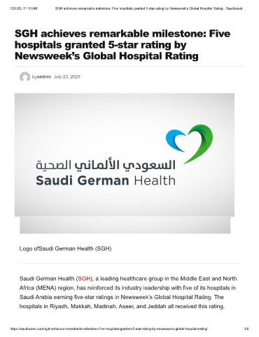 7/24/25, 11:10 AM SGH achieves remarkable milestone: Five hospitals granted 5-star rating by Newsweek’s Global Hospital Rating - Saudiweek.