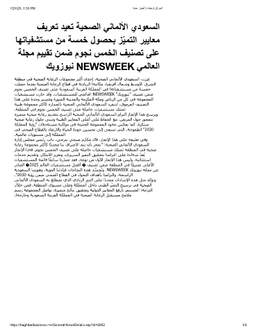 تﺎﯿﻔﺸﺘﺴﻣ تزﺎﺣ ﺪﻗو .تﺎﯿﻔﺸﺘﺴﻤﻠﻟ ﻲﻤﻟﺎﻌﻟا NEWSWEEK "ﻚﻳوزﻮﯿﻧ" ﻒﯿﻨﺼﺗ ﻦﻤﺿ