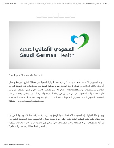 ﺔﻠﺻﺎﺣ تﺎﻴﻔﺸﺘﺴﻣ ﻚﻠﺘﻤﺗ ﺔﻴﺒﻃ ﺔﻋﻮﻤﺠﻣ ﺮﺜﻛﺄﻛ ةراﺪﺼﻟﺎﺑ ﺔﻴﺤﺼﻟا ﻲﻧﺎﻤﻟألا يدﻮﻌﺴﻟا دﺮﻔﻨﺘﻟ ،قﻮﻣﺮﻤﻟا ﻒﻴﻨﺼﺘﻟا