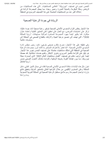 ﻰﻟإ ﺔﻜﻠﻤﻤﻟا ﻲﻓ ﻲﺤﺼﻟا عﺎﻄﻘﻟﺎﺑ ءﺎﻘﺗرﻻاو ةﺎﯿﺤﻟا ﺔﯿﻋﻮﻧ ﻦﯿﺴﺤﺗ ﻰﻟإ فﺪﮭﺗ ﻲﺘﻟا ،″2030