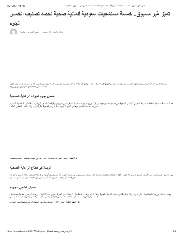 7/24/25, 1:48 PM تﯾﺷﻧﺎﻣ ةدﯾرﺟ – موﺟﻧ سﻣﺧﻟا فﯾﻧﺻﺗ دﺻﺣﺗ ﺔﯾﺣﺻ ﺔﯾﻧﺎﻣﻟأ ﺔﯾدوﻌﺳ تﺎﯾﻔﺷﺗﺳﻣ ﺔﺳﻣﺧ ..قوﺑﺳﻣ رﯾﻏ زّﯾﻣﺗ