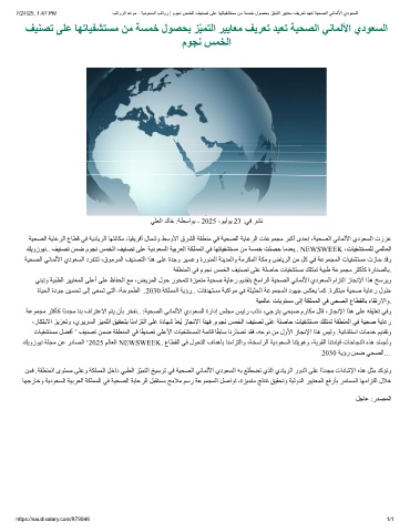 ﺔﯿﻤﻟﺎﻋ تﺎﯾﻮﺘﺴﻣ ﻰﻟإ ﺔﻜﻠﻤﻤﻟا ﻲﻓ ﻲﺤﺼﻟا عﺎﻄﻘﻟﺎﺑ ءﺎﻘﺗرﻻاو.