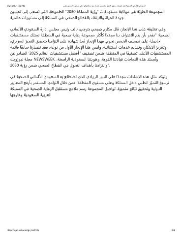 ﻲﻓ ﺔﻴﺤﺼﻟا ﻲﻧﺎﻤﻟألا يدﻮﻌﺴﻟا ﻪﺑ ﻊﻠﻄﻀﺗ يﺬﻟا يدﺎﻳﺮﻟا روﺪﻟا ﻰﻠﻋ ادﺪﺠﻣ تادﺎﺷإلا هﺬﻫ ﻞﺜﻣ ﺪﻛﺆﺗو