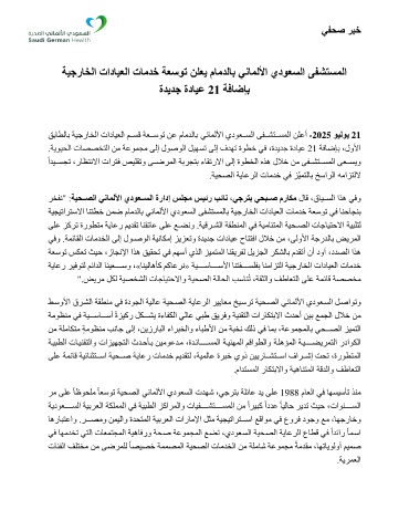 ﻖﺑﺎﻄﻟﺎﺑ ﺔﯿﺟرﺎﺨﻟا تادﺎﯿﻌﻟا ﻢــﺴﻗ ﺔﻌــﺳﻮﺗ ﻦﻋ مﺎﻣﺪﻟﺎ ﺑ ﻲﻧﺎﻤﻟﻷا يدﻮﻌــﺴﻟا ﻰﻔــﺸﺘــﺴﻤﻟا ﻦﻠﻋأ - 2025 ﻮﯿﻟﻮﯾ 21