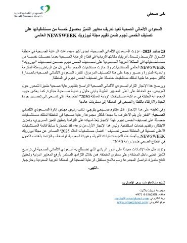 ﺔﻘﻄﻨﻣ ﻲﻓ ﺔﯿﺤـــﺼﻟا ﺔﯾﺎﻋﺮﻟا تﺎﻋﻮﻤﺠﻣ ﺮﺒﻛأ ىﺪﺣإ ،ﺔﯿﺤـــﺼﻟا ﻲﻧﺎﻤﻟﻷا يدﻮﻌـــﺴﻟا تزﺰﻋ - 2025 ﻮﯿﻟﻮﯾ 23