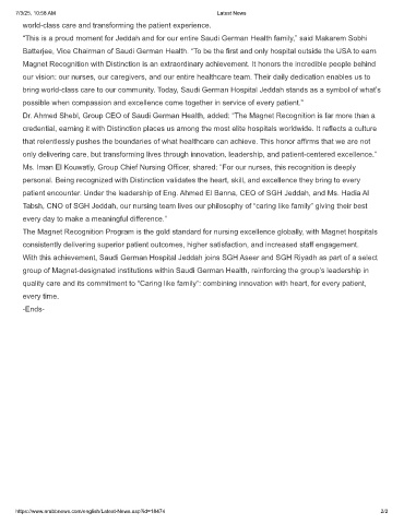 Dr. Ahmed Shebl, Group CEO of Saudi German Health, added: “The Magnet Recognition is far more than a