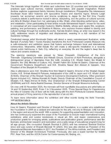 9/16/25, 10:30 AM Aichi Triennale opens its sixth edition curated by Hoor Al Qasimi - SGMB